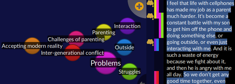Also remember that your bubbles don’t have to have data in them! You can use them in Quirkos to create a mind-map, since you can move and group them around, and conceptualise things as they emerge from the data.